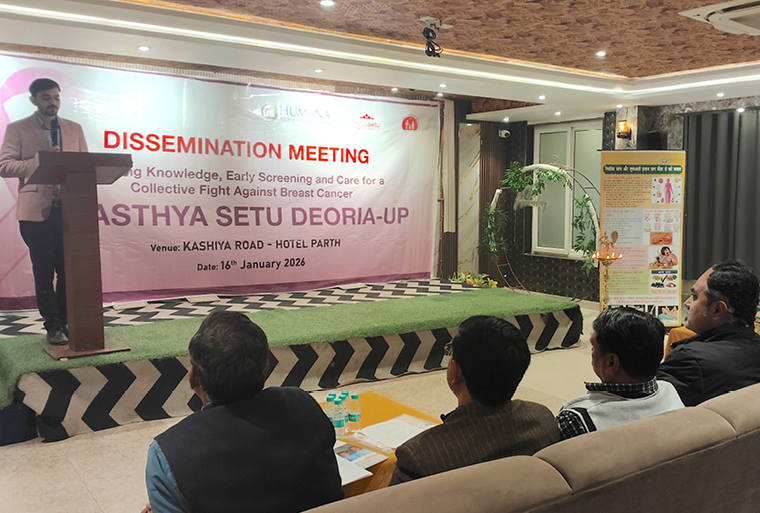 Humana People to People India’s (HPPI) Project Swasthya Setu organised dissemination events to share its learning and impact from its work, aimed at strengthening early breast cancer detection and improving women’s health outcomes through community-led action. The Project was operational in Deoria (Uttar Pradesh) and Ballari (Karnataka) from February 2025 to January 2026.